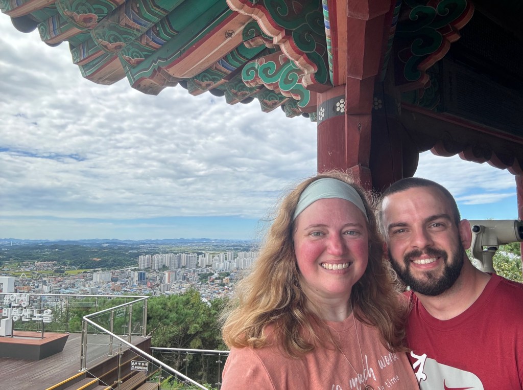 We hiked a mountain near our apartment building. There was a traditional style Korean lookout pavilion near the seating area at the top!